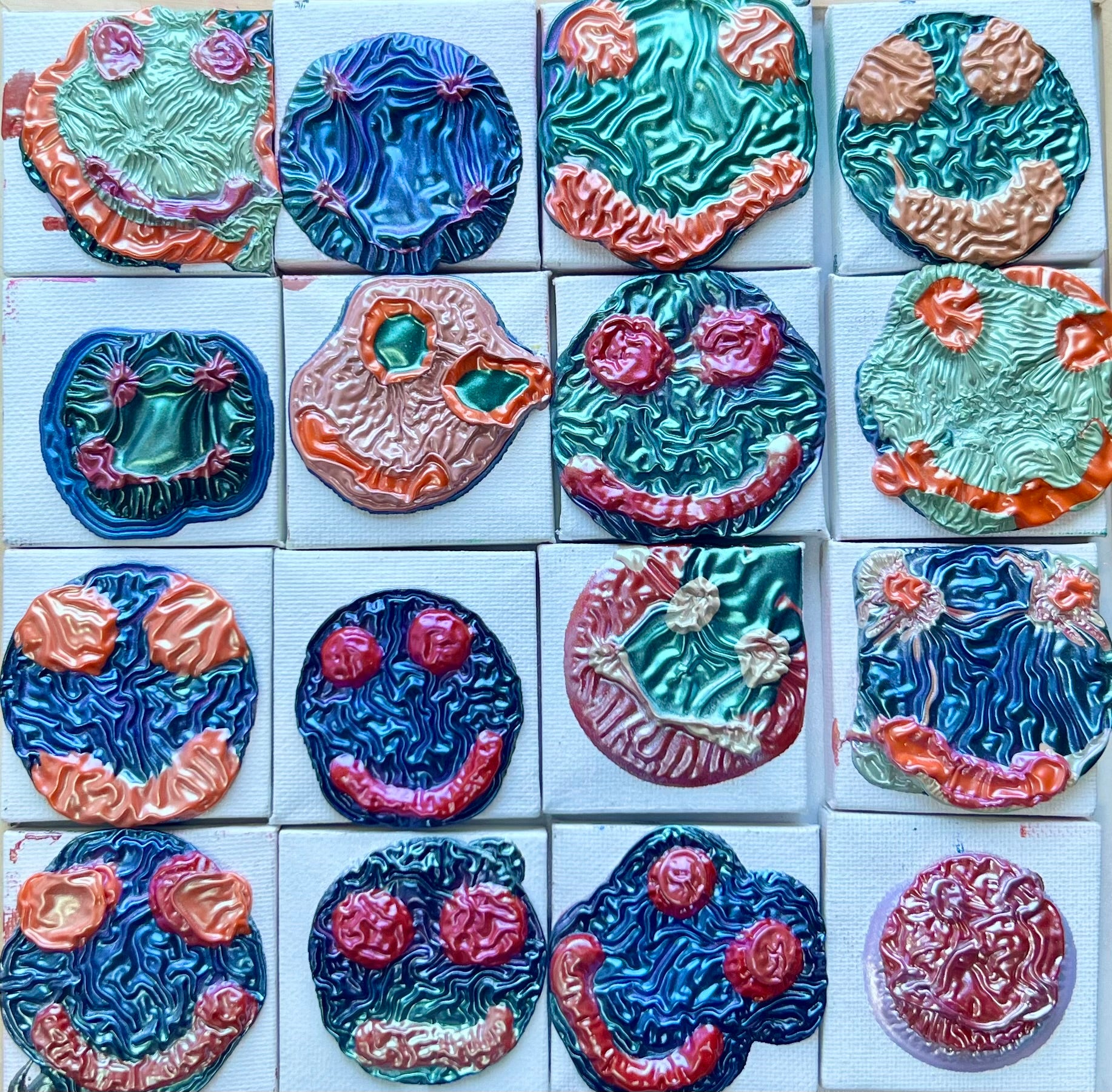 Each Face Dot features its own unique texture and design. This is a limited series of 16 pieces .